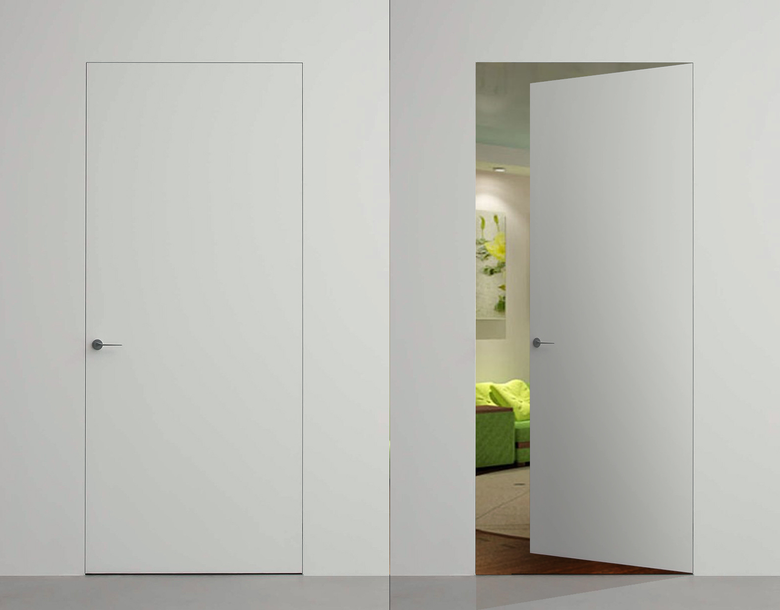 В магазине бренда клиент может купить белую дверь под покраску серии Secret. Система комплектуется скрытой коробкой и подходит для маскирования на фоне стены. На чистой и гладкой поверхности створки хорошо смотрится не только эмаль, но и декоративная штукатурка, обои, керамическая плитка.