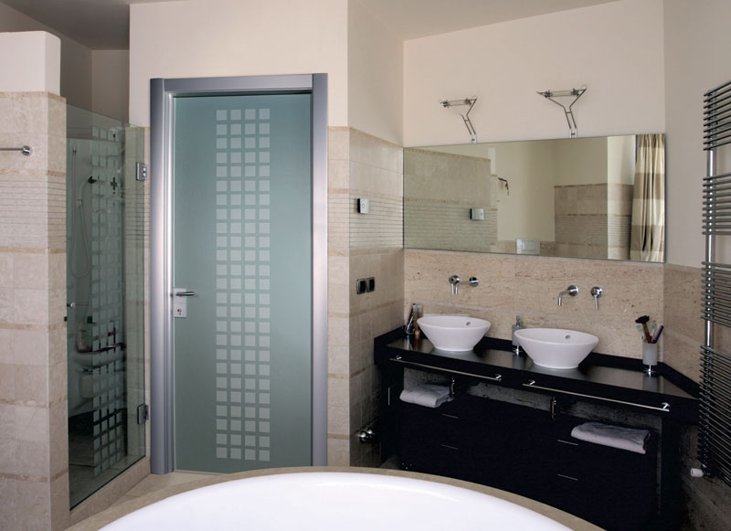 изделия, оборудованные стеклянными вставками различных размеров, форм, дизайна. Например, для черно-белой ванной можно выбрать яркую створку коллекции Torino, оснащённую тёмным стеклом;