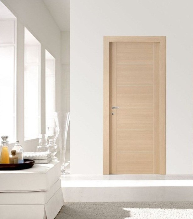 В оформлении деревянных дверей из фанеры принимает участие шпон двух типов: