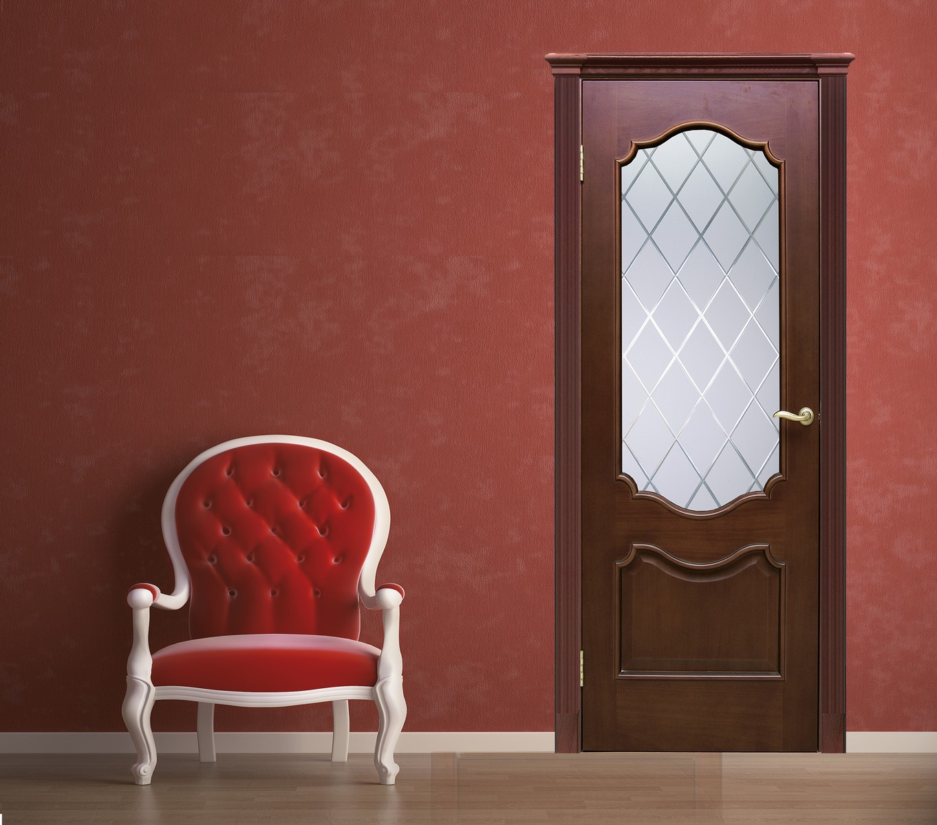 - на «дворцовых» собратьев мало похожи строгие конструкции из аристократических английских особняков. Их оборудуют прямоугольными филёнками, выполняют в благородных ореховых или дубовых тонах, оснащают решётчатыми стёклами и сдержанными, но респектабельными погонажными элементами. Примеры моделей включены в серии Lady и Piemonte;