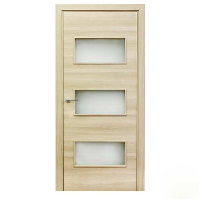 Несмотря на бесстрастный прохладный цвет, двери цвета Светлый королевский орех не кажутся скучными. Тому, в частности, способствуют правильно подобранные украшающие детали. Как правило, створки современного дизайна изготавливаются по каркасно-щитовой технологии и отличаются гладкой поверхностью. Разнообразить облик изделия призваны: