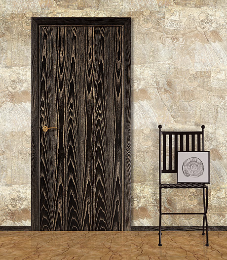 В производстве классических конструкций используют натуральное дерево, которое от природы обладает тёмным цветом (например, эбен или палисандр) либо обрело его после процедуры морения. Великолепно смотрится и чёрная дверь с золотом, окрашенная эмалью.