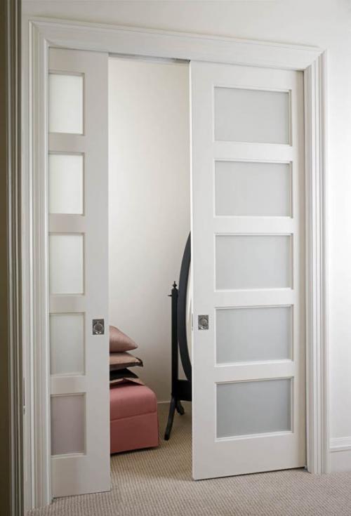 Установка остеклённых дверей в тёмных комнатах - способ провести необходимые лучи из смежного помещения. При этом вовсе не обязательно открывать обзор. Например, матовые стёкла сохраняют светопропускную способность, хотя и оберегают приватность обстановки. Заслуживают рассмотрения:
