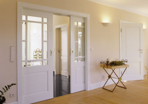 - сделать обстановку более дружелюбной - неслучайно белые двухстворчатые межкомнатные двери обрели столь широкое применение в обустройстве гостиных и залов;