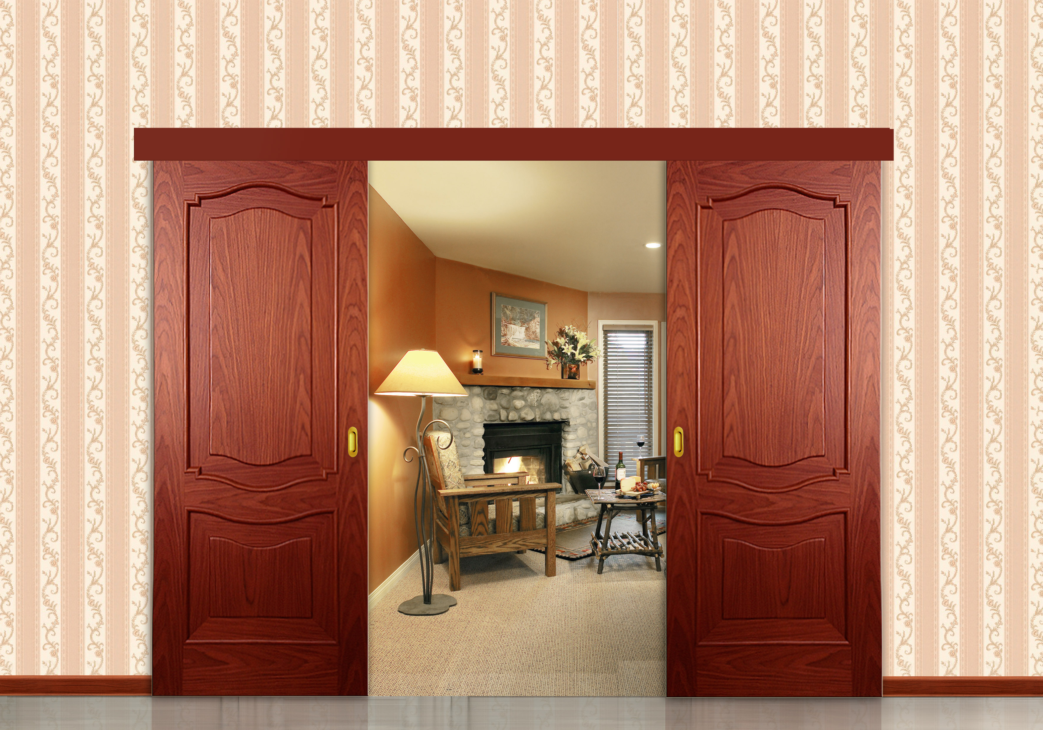 - тип открывания. Лёгкие комбинированные секции, обшитые деревом, в равной степени успешно сочетаются с петлями и откатными механизмами. Ассортимент двухстворчатых шпонированных дверей, купить которые можно сегодня, включает купейные, складные, кассетные системы;