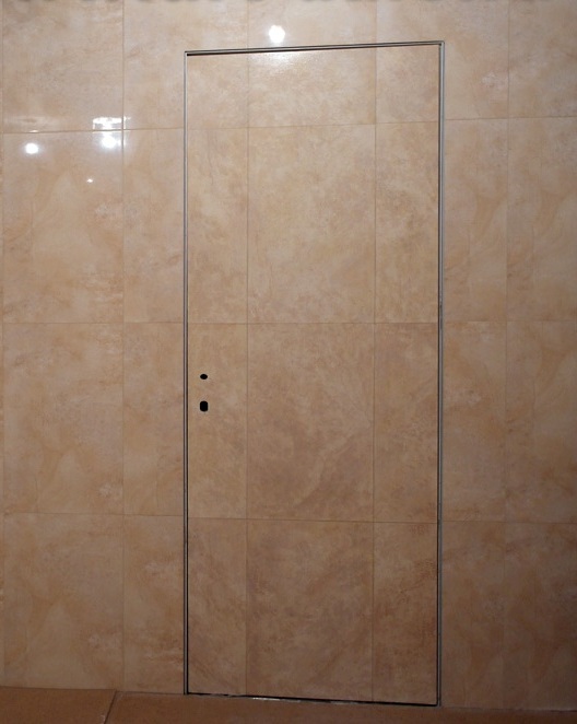 - радует высокой влаго- и термостойкостью, неприхотливостью в обращении и уходе, прекрасными изолирующими способностями. Скрытые двери под плитку - хороший вариант для комнаты с негативными условиями пользования;