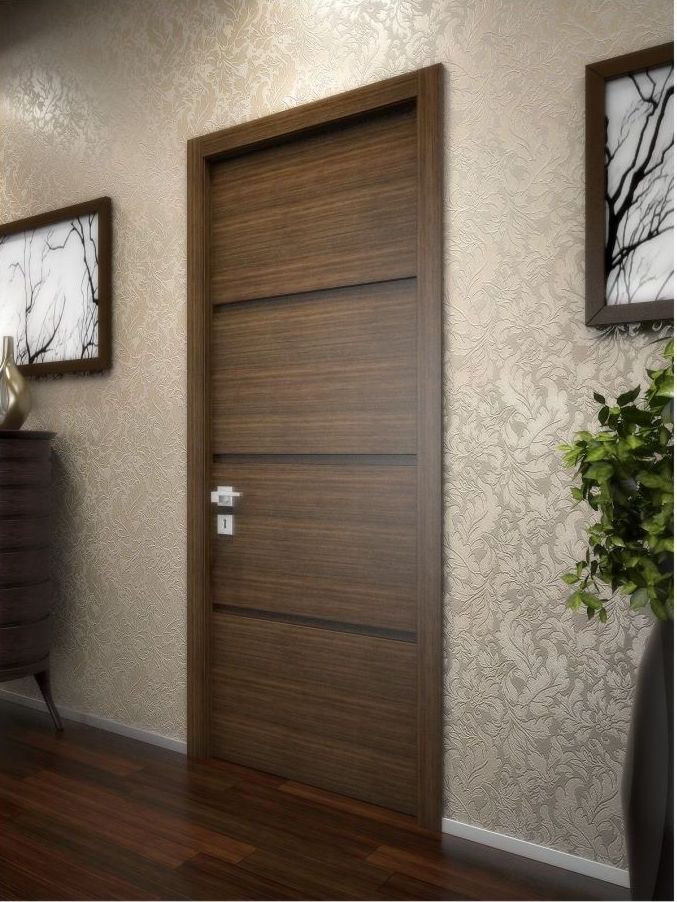 - простоту и скорость оформления проёма. Размеры шпонированных дверей чаще всего сочетаются с местом монтажа, а значит, нет нужды прибегать к различным манипуляциям, связанным с реконструкцией стены или подрезкой створки.