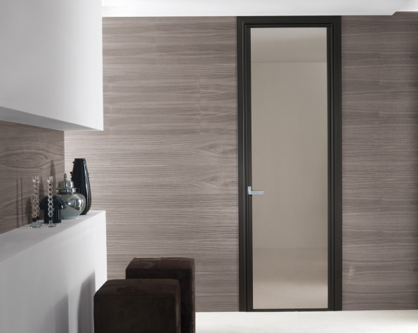 - облицована шпоном дуба, ясеня, ореха, бука, венге. Предпочтение отдают либо спокойным нейтральным оттенкам выбеленной палитры, либо выразительным экзотическим расцветкам. Вместо натурального дерева в оформлении стильных современных межкомнатных дверей нередко применяют экошпон - полипропиленовую плёнку с рельефной текстурой;