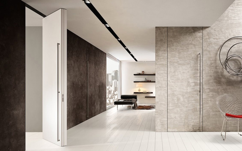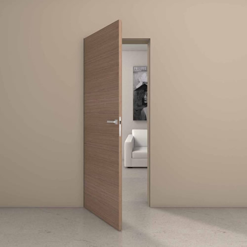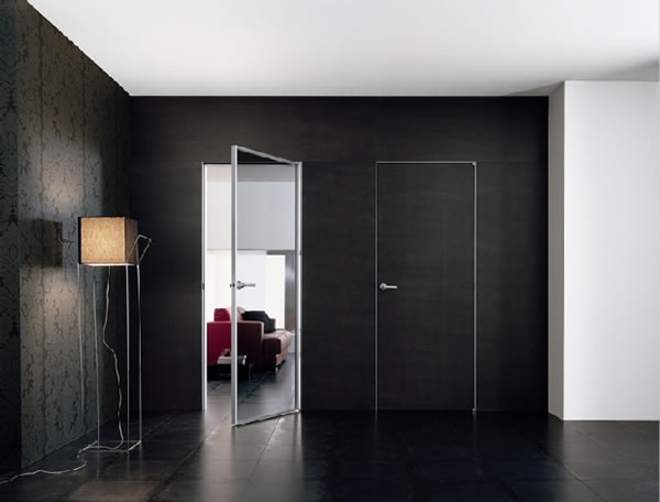 - одно- и двусторонних. Характер обычного изделия толщиной 35-40 мм предполагает компланарное расположение с одной стороны проёма. Вторую же, как правило, оформляют с помощью наличников. Монтаж дверей-невидимок толщиной 75, а то и 100 мм позволяет обеспечить их маскирование и изнутри, и снаружи помещения;
